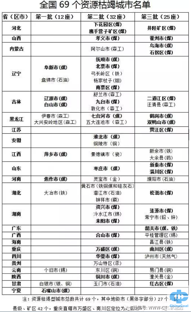 我国69个典型资源枯竭型城市,煤炭城市占一半!
